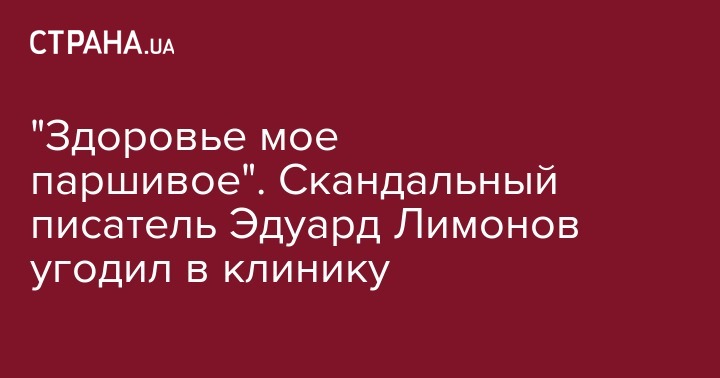 Скандально известный российский писатель и политик Эдуард Лимонов (экс-глава запрещенной в России Национал-большевистской партии - Прим.Ред.) публично заявил о проблемах со здоровьем и подтвердил что находится в клинике.