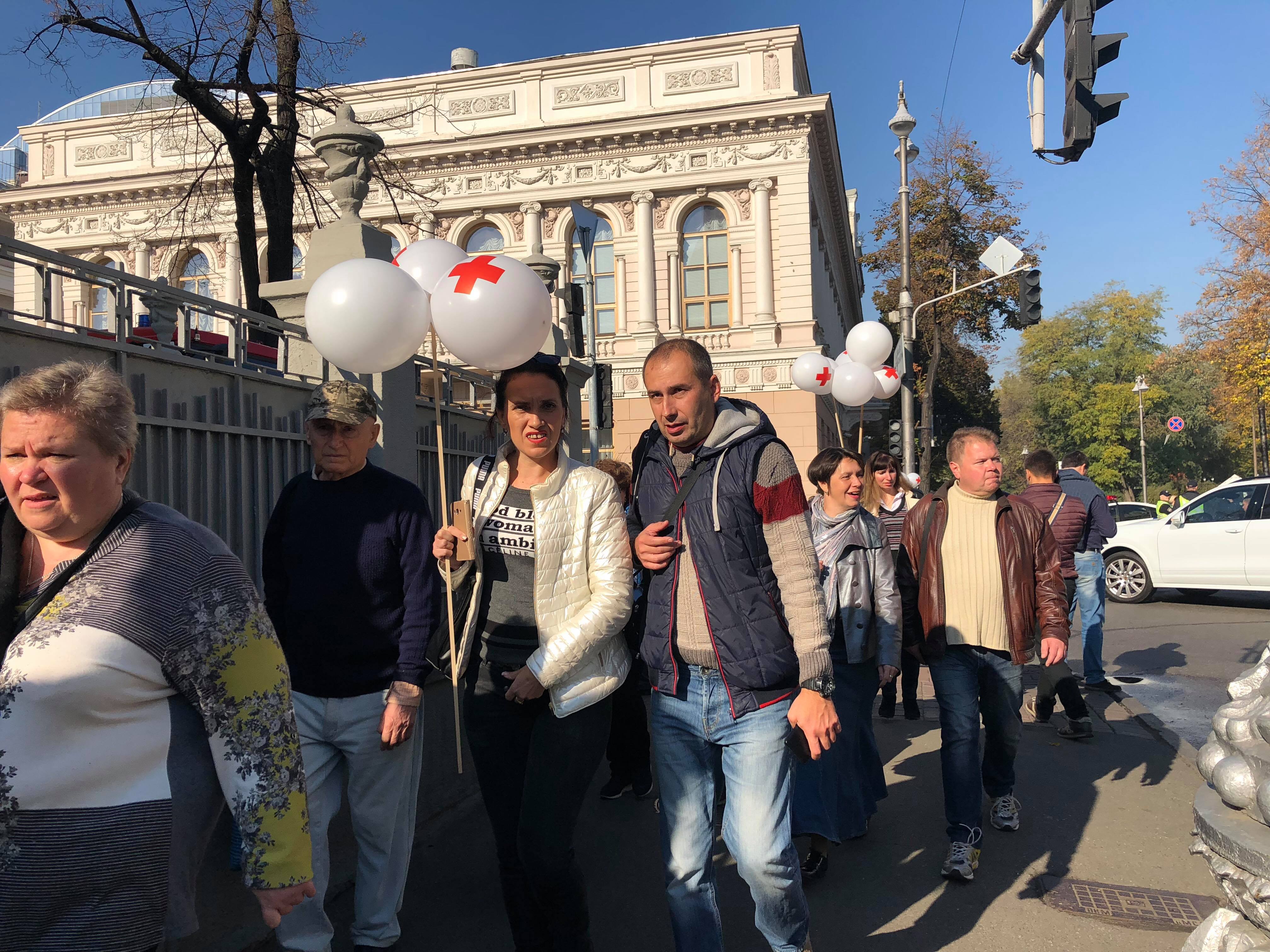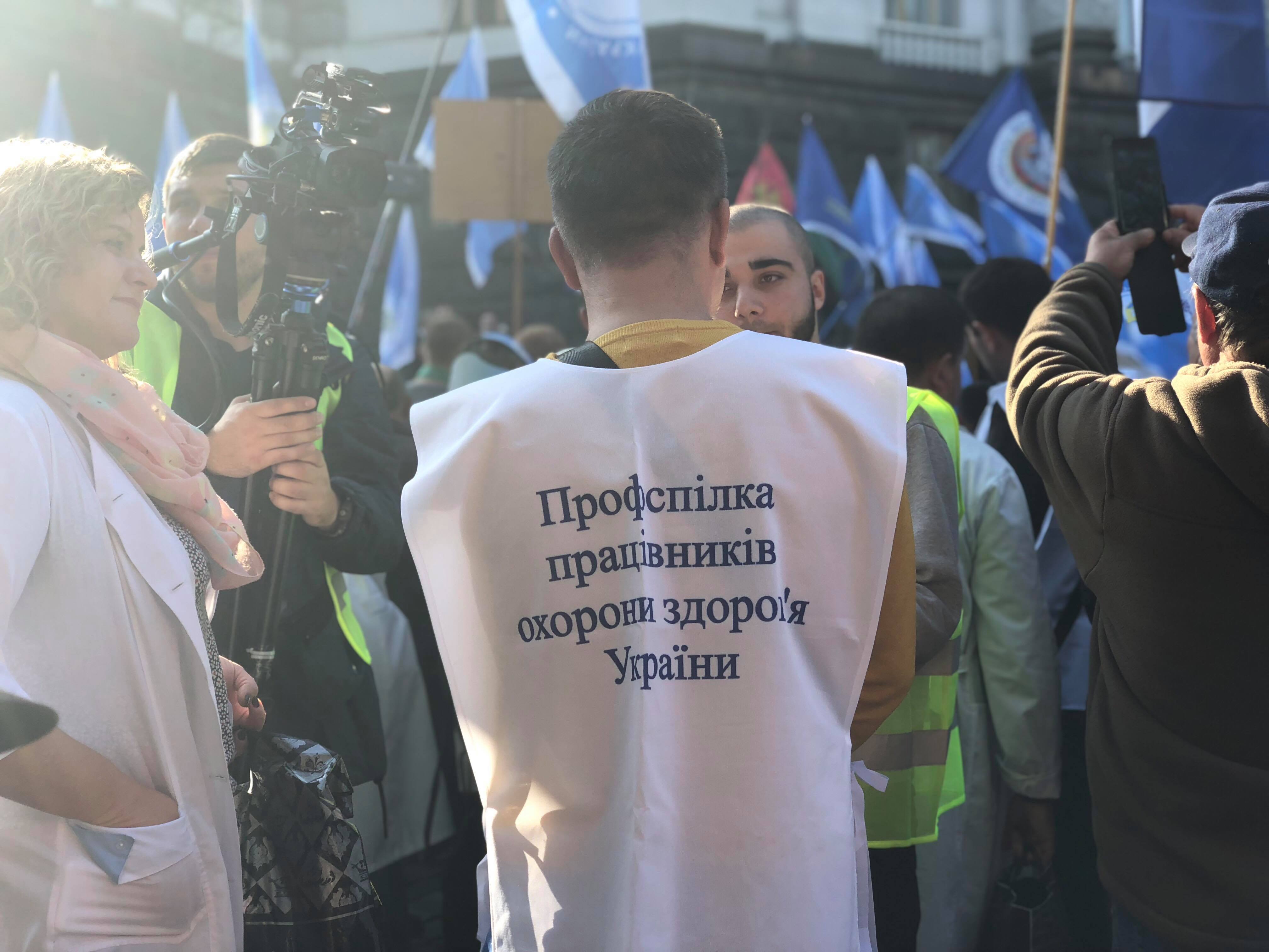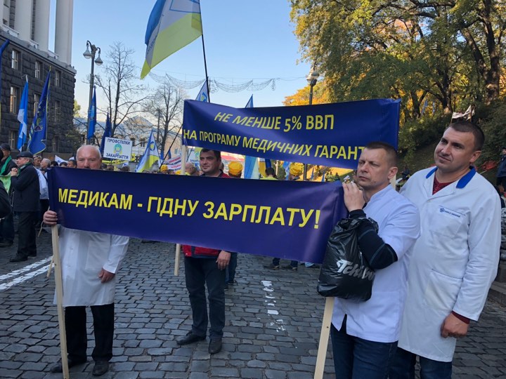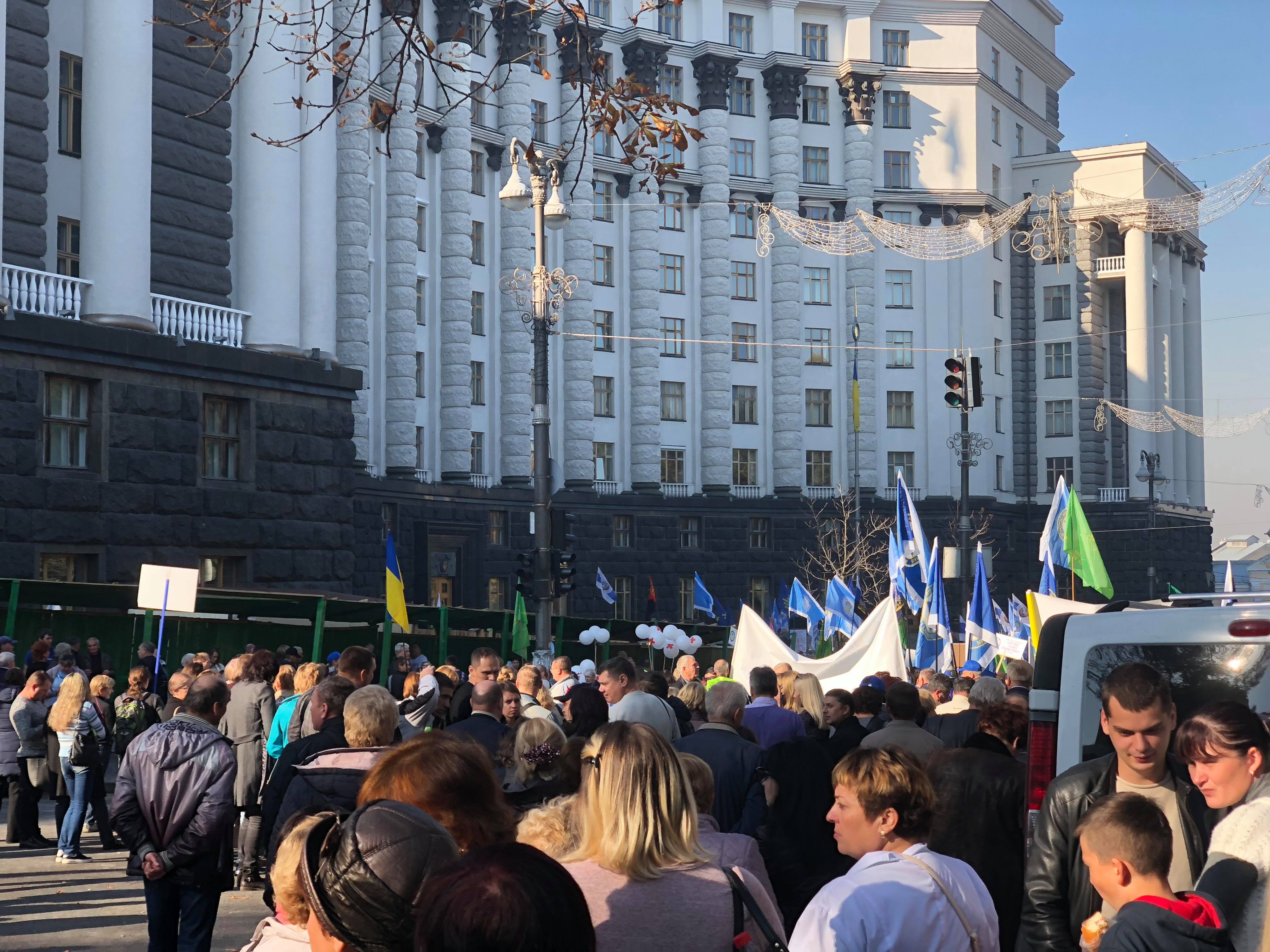 Как сообщает с места событий корреспондент "Страны", возле Кабмина собрались медики.