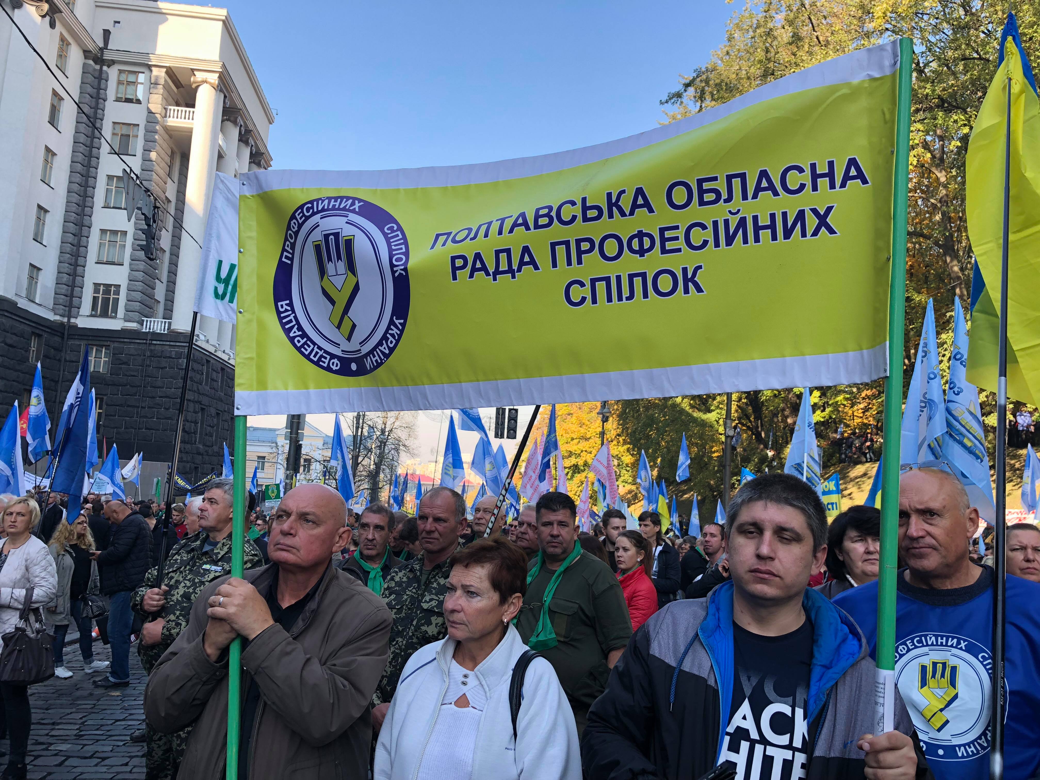 В среду, 17 октября, в центре Киева проходит Всеукраинская профсоюзная акция протеста, приуроченная к Всемирному дню действий за достойный труд.