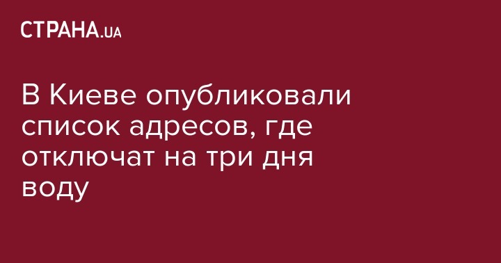 В Киеве опубликовали список адресов, где отключат на три дня воду