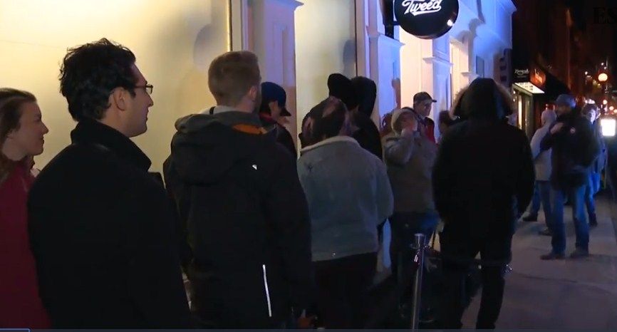 Совершеннолетним канадцам употреблять марихуану теперь позволено даже ради удовольствия, поэтому люди занимали очередь уже с 20:00 16 октября. "В это время в магазинах уже были выставлены ценники на траву. Но купить они ее смогли лишь с наступлением полуночи", - говорится в репортаже.