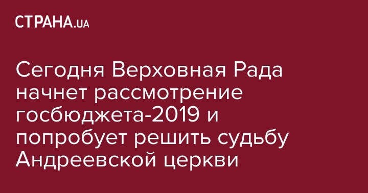 Сегодня Верховная Рада начнет рассмотрение госбюджета-2019 и попробует решить судьбу Андреевской церкви