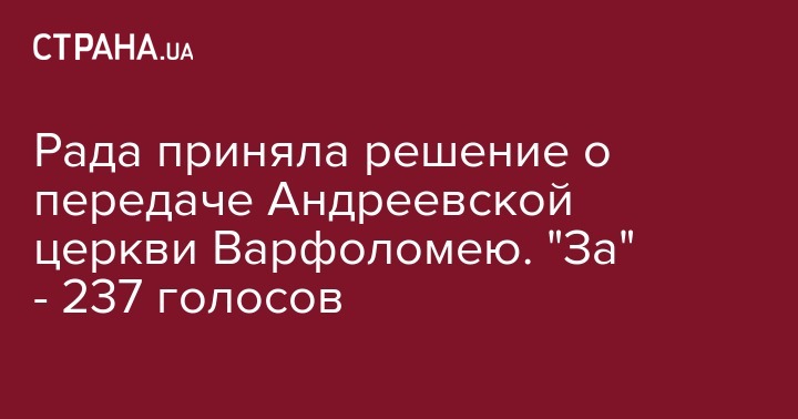 Рада приняла решение о передаче Андреевской церкви Варфоломею. "За" - 237 голосов