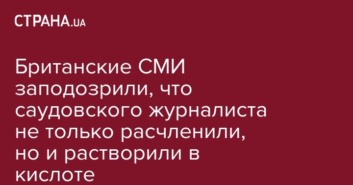 Одной из версий убийства саудовского журналиста Джамаля Хашогги (Jamal Khashoggi) считается помещение его тела в быстродействующую кислоту. Об этом сообщает британское Sky News со ссылкой на источники.