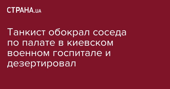 Танкист обокрал соседа по палате в киевском военном госпитале и дезертировал