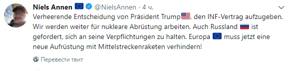 По словам Аннена, "Европа должна теперь предотвратить новую модернизацию ракет средней дальности".