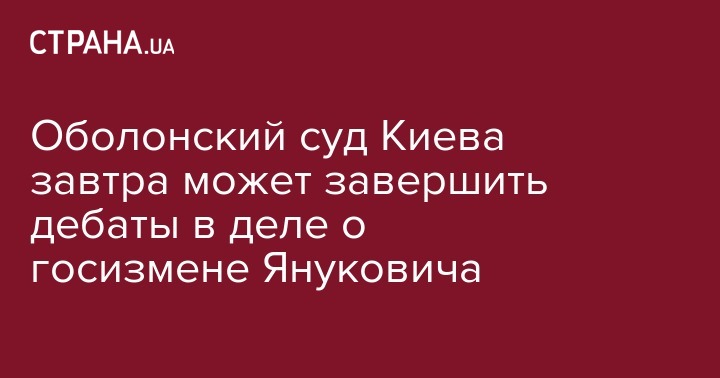 Во вторник, 23 октября, Оболонский районный суд Киева может заявить о завершении стадии дебатов в деле экс-президента Украины Виктора Януковича, которого обвиняют в государственной измене. Такое решение сегодня, 22 октяьря, огласил председательствующий в деле судья Владислав Девятко, передает ТАСС.