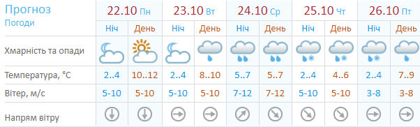 Ресурс Мeteoprog.ua дает похожий прогноз, но по данным этого ресурса самые холодные дни недели четверг и пятница, а среди недели будет идти дождь, но не обильный и без снега. На выходных +13...+19, пасмурно.