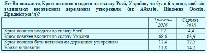 Поддерживают существование Крыма как отдельного государственного образования 12%, а принадлежность к России признают 4%.