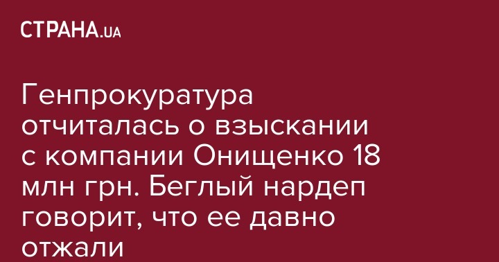 Генеральная прокуратура Украины отчиталась, что по ее иску с компании беглого нардепа Александра Онищенко "Пласт" в госбюджет было взыскано 18 миллионов гривен. Об этом сообщает пресс-служба ГПУ.