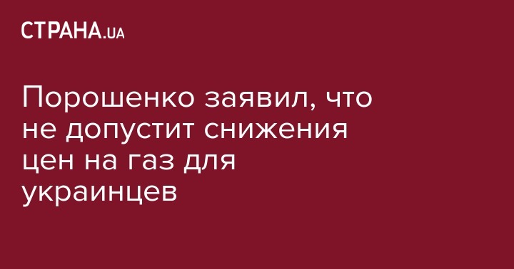 Президент Украины Петр Порошенко заявил, что не позволит ни при каких обстоятельствах снизить цены на газ для населения, сообщает Интерфакс-Украина.