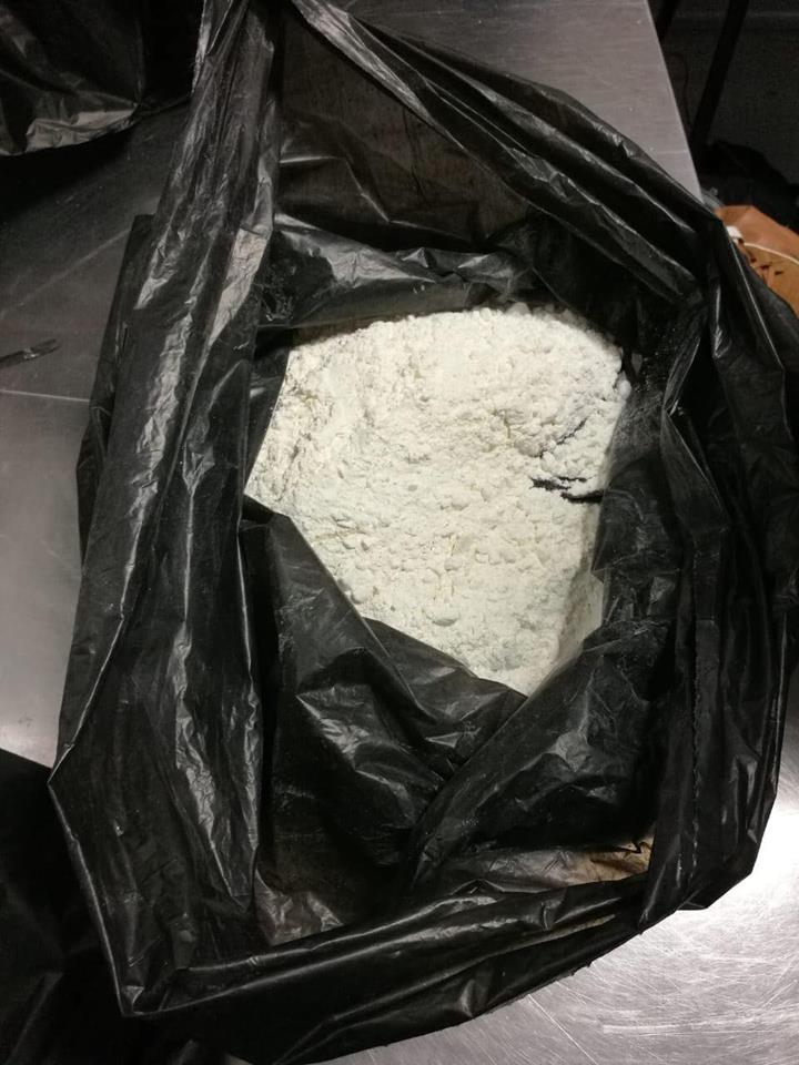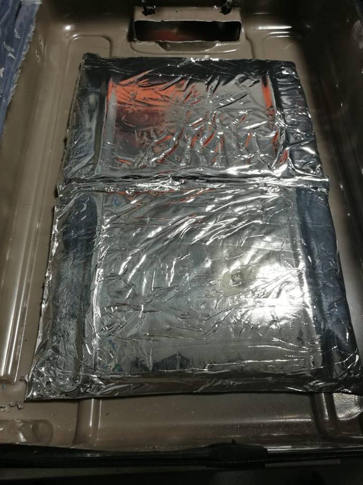 "При осмотре указанного чемодана выявлено наличие двойного дна. В дальнейшем в ходе осмотра указанного дна обнаружено и изъято 2 скрепленных между собой пакета из профольгованного материала, внутри которых находилось порошкообразное вещество белого цвета массой 4,1 кг. Проведенный с помощью экспресс-теста COCAINECRACK TEST экспресс-анализ дал положительный результат на наличие в порошкообразном веществе наркотического вещества - кокаина", - сообщили в прокуратуре.