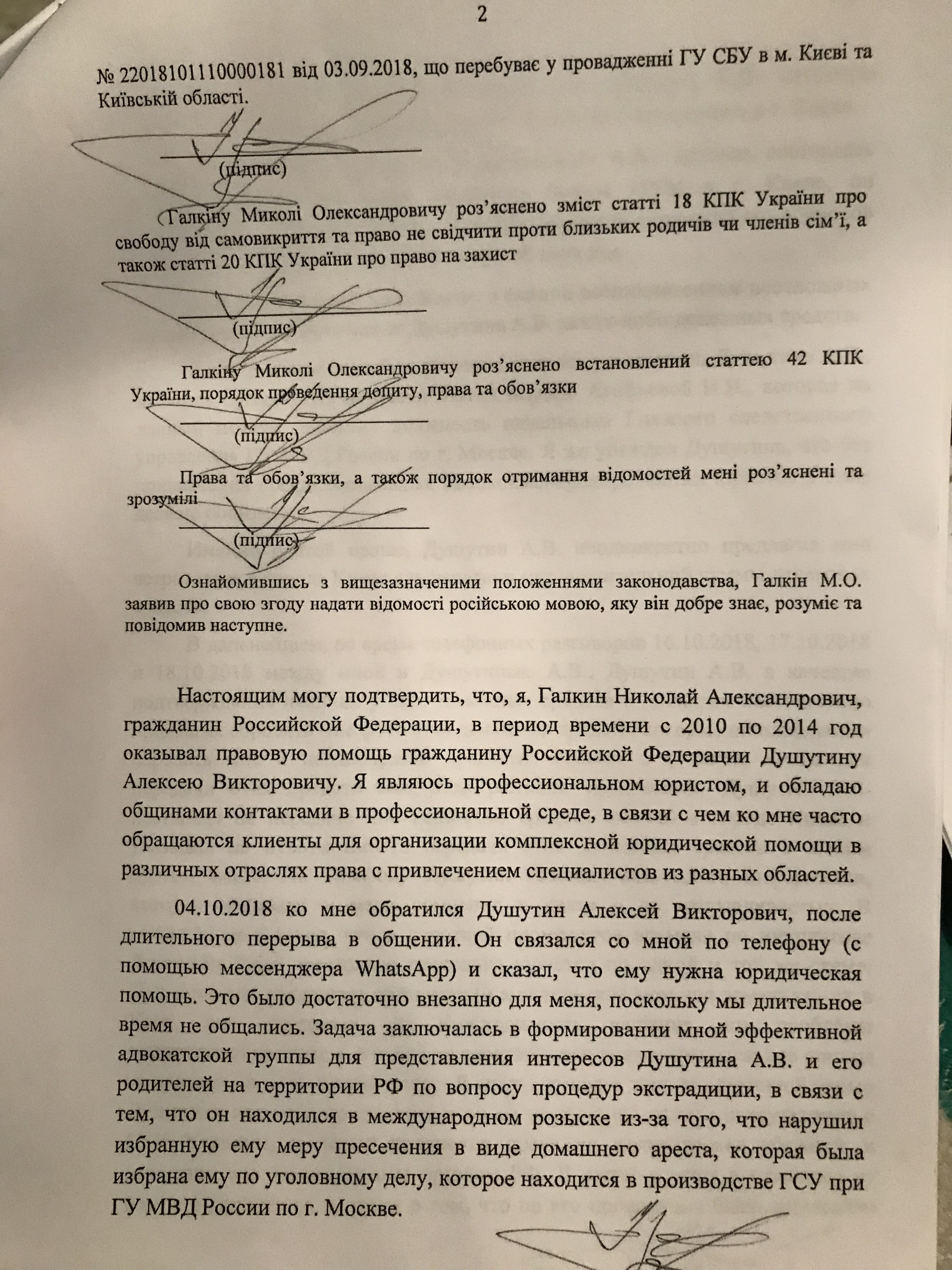 Пояснения, которые дал российский адвокат Николай Галкин. С ним Алексей Душутин пытался провернуть трюк, ранее удавшийся ему с Тимофеем Нагорным, Владимиром Филимоновым и Георгием Левчуком, источник фото: "Страна"