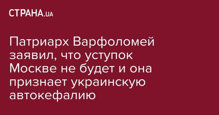 Патриарх Варфоломей заявил, что уступок Москве не будет и она признает украинскую автокефалию