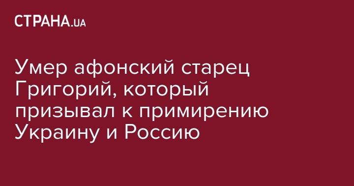 Умер афонский старец Григорий, который призывал к примирению Украину и Россию