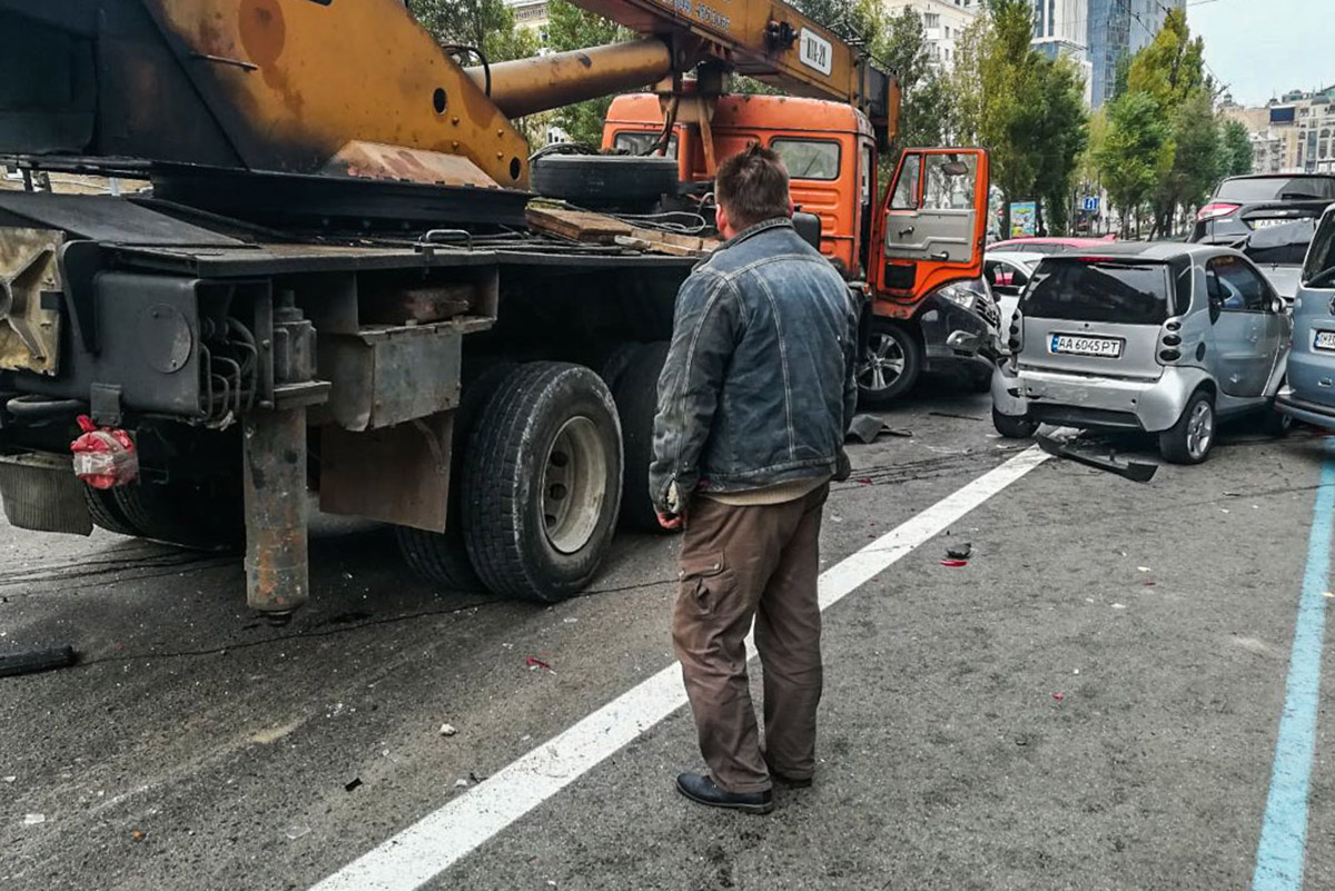 Сегодня, 23 октября, около 09:00 на бульваре Леси Украинки в Киеве произошло масштабное ДТП. Его спровоцировал автокран, который смял 17 автомобилей. Об этом сообщает отдел коммуникации ГУ НП в Киеве.