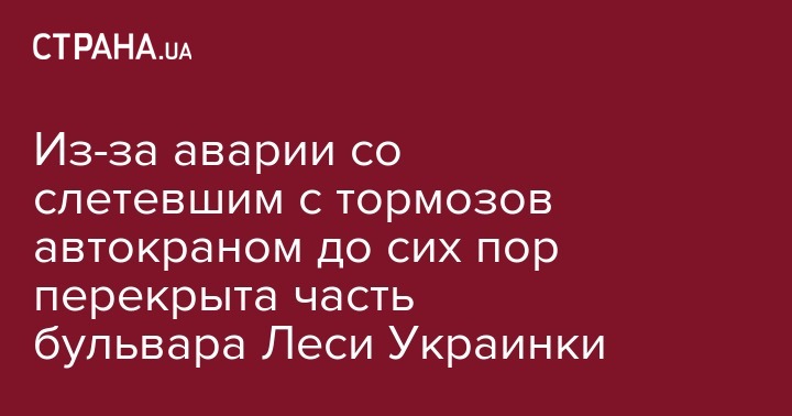 Утренняя авария на бульваре Леси Украинки с участием 18 автомобилей, которые по предварительным данным столкнул вместе неисправный автокран, до сих пор не разобрана.