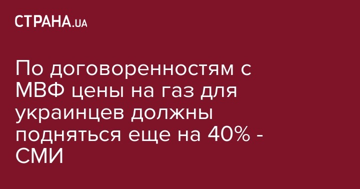 По договоренностям с МВФ цены на газ для украинцев должны подняться еще на 40% - СМИ