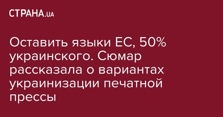 Вместе с тем, когда речь идет о печатной прессе, возникает проблема того, что большинство украинцев приучены читать русскоязычные издания, говорит Сюмар. Кроме того, в случае одномоментного перехода печатных изданий на украинский язык может начаться массовая контрабанда журналов, газет и глянца из России через восточные территории.