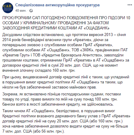 Скриншот: Facebook/ Спеціалізована антикорупційна прокуратура