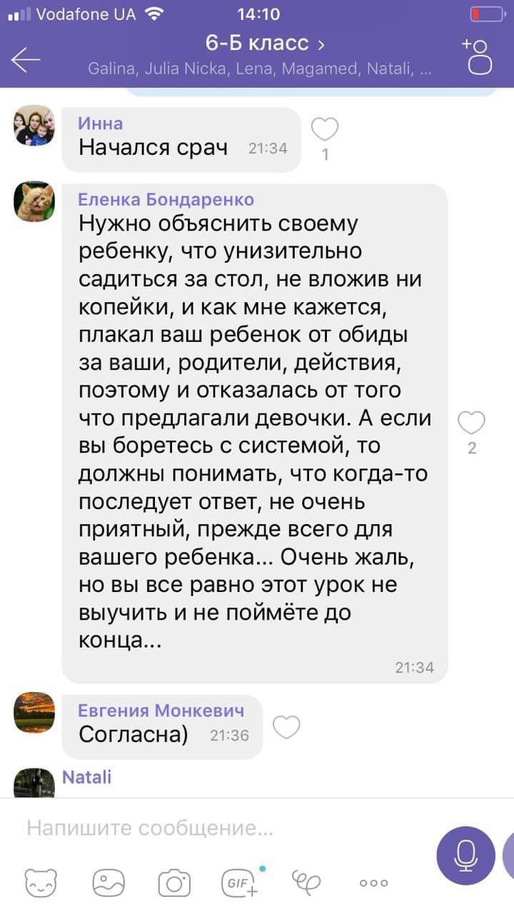 В тот же вечер в родительском чате класса началась настоящая перепалка- класс разделился на два лагеря. Сторона обвинения продолжала настаивать - не заплатил, значит не достался торт.