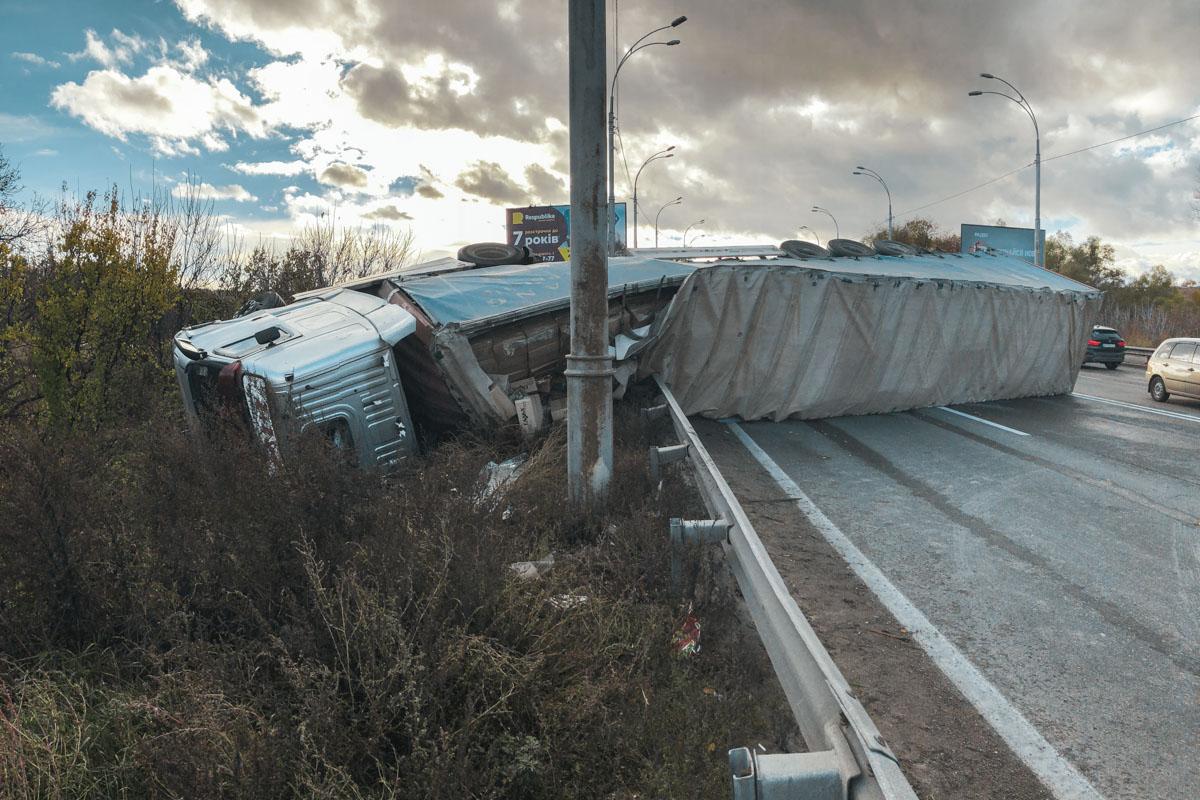На окружной дороге украинской столицы перевернулась многотонная фура. Видео