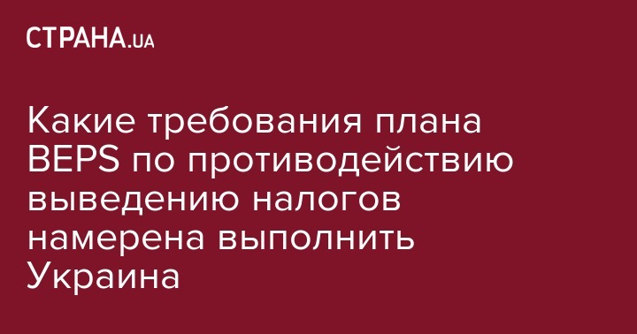Украина намерена выполнить восемь действий плана противодействия размыванию налогооблагаемой базы и выводу прибыли из-под налогообложения BEPS (base erosion and profit shifting - Прим.ред.).