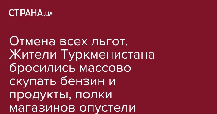 Жители столицы Туркмении Ашхабада массово скупают бензин и продукты, опасаясь скорого подорожания. Об этом сообщает местная служба "Радио Свобода".