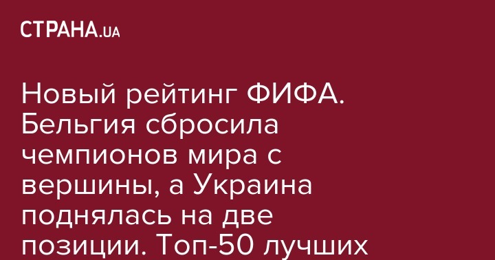 Новый рейтинг ФИФА. Бельгия сбросила чемпионов мира с вершины, а Украина поднялась на две позиции. Топ-50 лучших сборных планеты