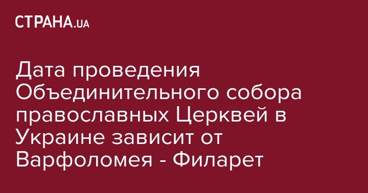 Дата проведения Объединительного собора православных Церквей в Украине до сих пор не определена. Об этом со ссылкой на заявление предстоятеля Украинской православной церкви Киевского патриархата патриарха Филарета сообщает "Интерфакс"