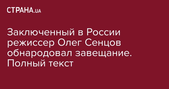 Украинский режиссер Олег Сенцов, который находится в российской колонии по обвинению в подготовке теракта в Крыму, попросил опубликовать завещание. Письмо "Громадському" передала его сестра Наталья Каплан. Издание публикует полный текст завещания: