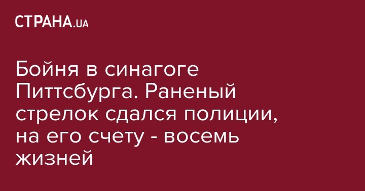 Бойня в синагоге Питтсбурга. Раненый стрелок сдался полиции, на его счету - восемь жизней