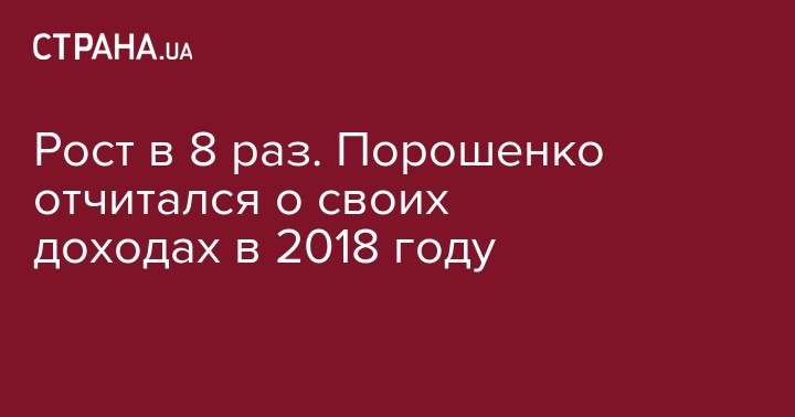 Ранее "Страна" сообщала, что доходы Порошенко в 2018-м в 5 раз превысили показатель 2017 года.