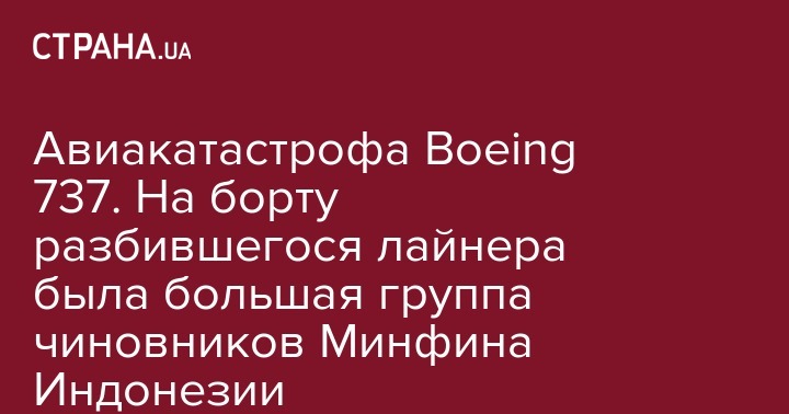 На борту рухнувшего у острова Ява авиалайнера Boeing 737 MAX 8 бюджетной индонезийской авиакомпании Lion Air находились около 20 сотрудников министерства финансов Индонезии. Об этом сообщила газета The Straits Times.