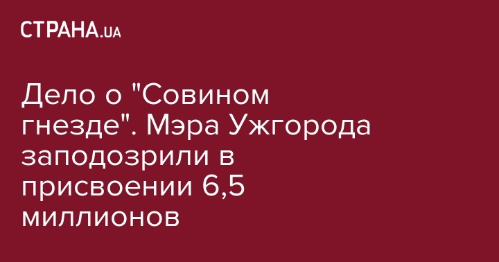 Дело о "Совином гнезде". Мэра Ужгорода заподозрили в присвоении 6,5 миллионов