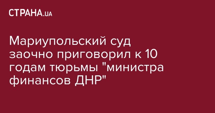 Мариупольский суд заочно приговорил к 10 годам тюрьмы "министра финансов ДНР"