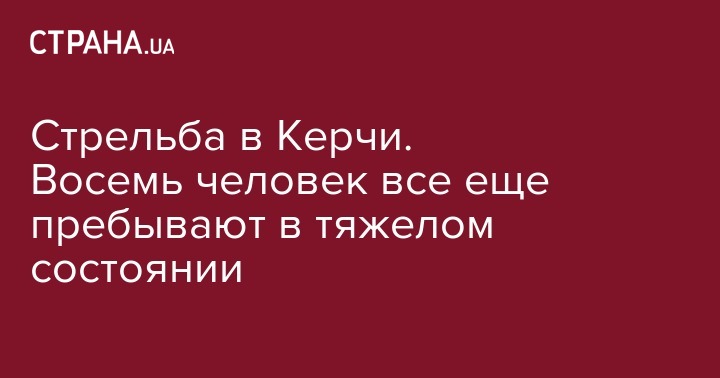 Восемь студентов керченского политехнического колледжа, пострадавших в результате кровавой бойни 17 октября, ве еще пребывют в тяжелом состоянии в московском Центре доктора Рошаля. Об этом сообщается на сайте уполномоченного по правам детей РФ Анны Кузнецовой.