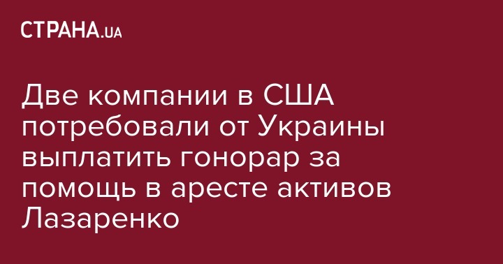 Две компании в США потребовали от Украины выплатить гонорар за помощь в аресте активов Лазаренко