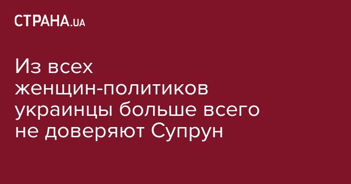Согласно результатам исследования у Тимошенко, Королевской и Богомолец также и наибольший рейтинг доверия – им доверяют более 20% граждан Украины. А вот самый высокий антирейтинг у исполняющей обязанности министра здравоохранения Ульяны Супрун – ей не доверяют более 75% украинцев.