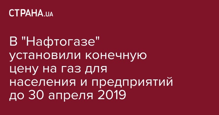 До 30 апреля 2019 года конечная цена газа для населения Украины составит 8548,92 грн за тыс. кубометров, для предприятий теплокоммунэнерго - 8361,85 грн за тыс. кубометров.