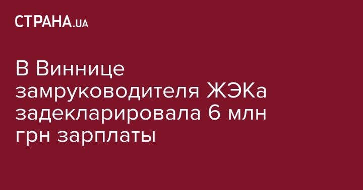 В Виннице одна из заместителей руководителя коммунальной жилищно-эксплуатационной конторы задекларировала зарплату в 5,96 миллионов гривен. Об этом свидетельствует данные, размещенные на сайте е-декларирования.