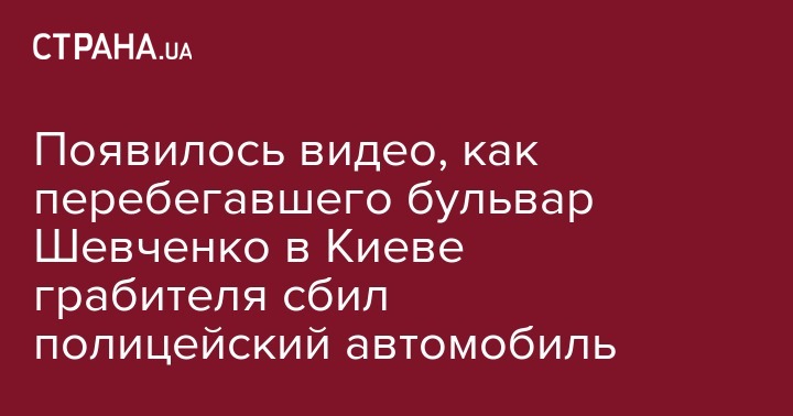 Появилось видео, как перебегавшего бульвар Шевченко в Киеве грабителя сбил полицейский автомобиль