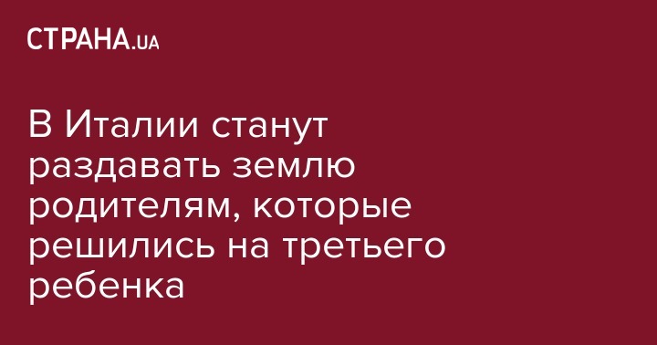Правительство Италии надеется, что идея выдачи земли за третьего ребенка увеличит рождаемость, сообщает The Lokal