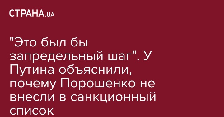 "Традиционно президенты не включаются в списки. Это был бы запредельный шаг", - отметил Дмитрий Песков. По его словам, принятые Россией антиукраинские санкции являются зеркальной мерой, принятой "в ответ на те шаги, которые предприняты украинской стороны".