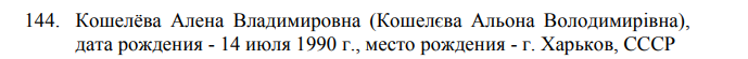 Так, в нем содержится фамилии 322 граждан Украины, при этом самая молодая из них - народный депутат Верховной рады Украины VIII созыва от Радикальной партии Олега Ляшко Алена Владимировна Кошелева (Кошелєва Альона Володимирівна) 14 июля 1990 года рождения.