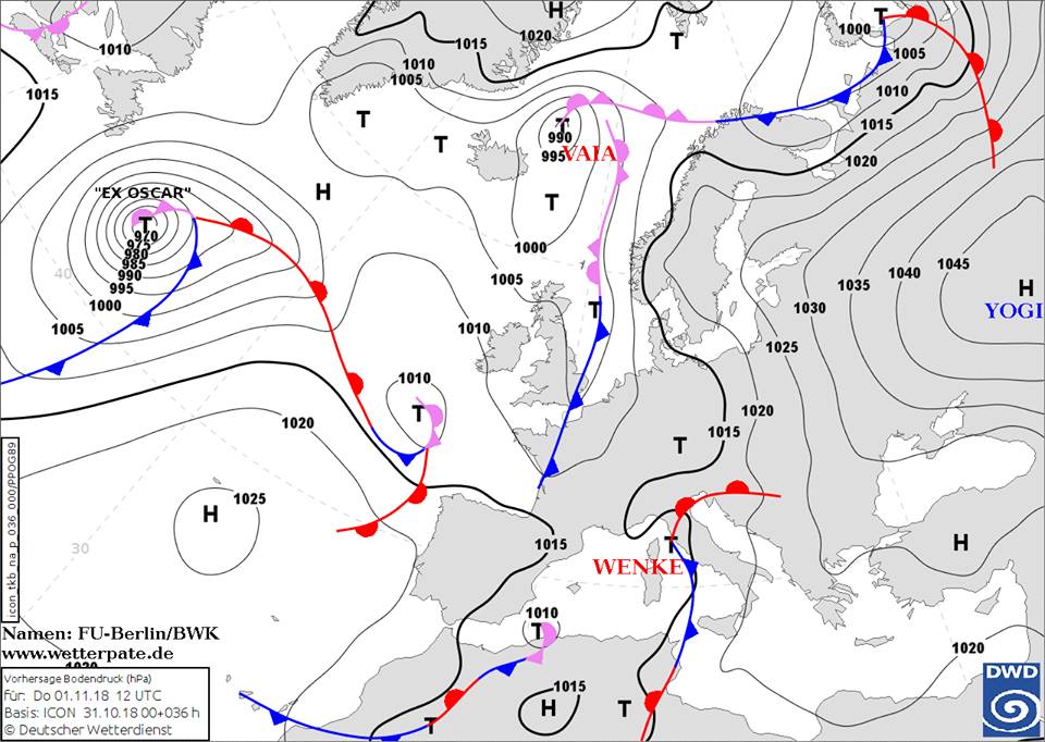 "Мощные дожди идут благодаря циклону Wenke на юго-западе Европы. А у нас и сегодня, и завтра благодаря антициклону Yogi - без существенных осадков, местами туманы, морось", - написала она.