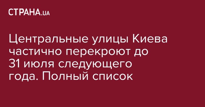 Центральные улицы Киева частично перекроют до 31 июля следующего года. Полный список