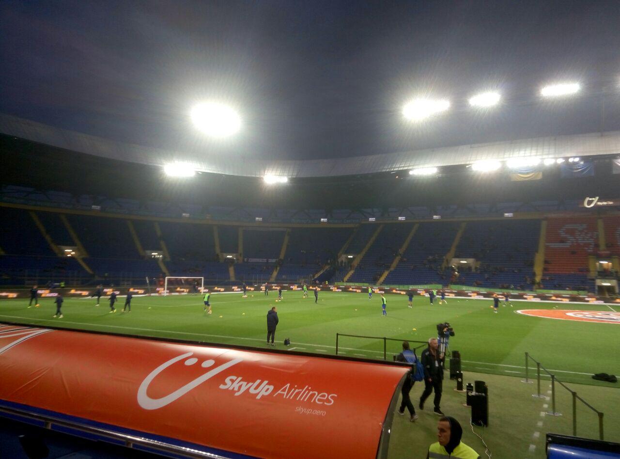 16:20 Первыми на поле стадиона "Металлист" выходят динамовцы.