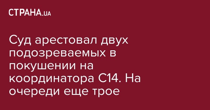 Бориспольский горрайонный суд Киевской области назначил два месяца пребывания в СИЗО двум подозреваемым в покушении на координатора С14 Сергея Мазура. Об этом сам Мазур написал на своей странице в Facebook.