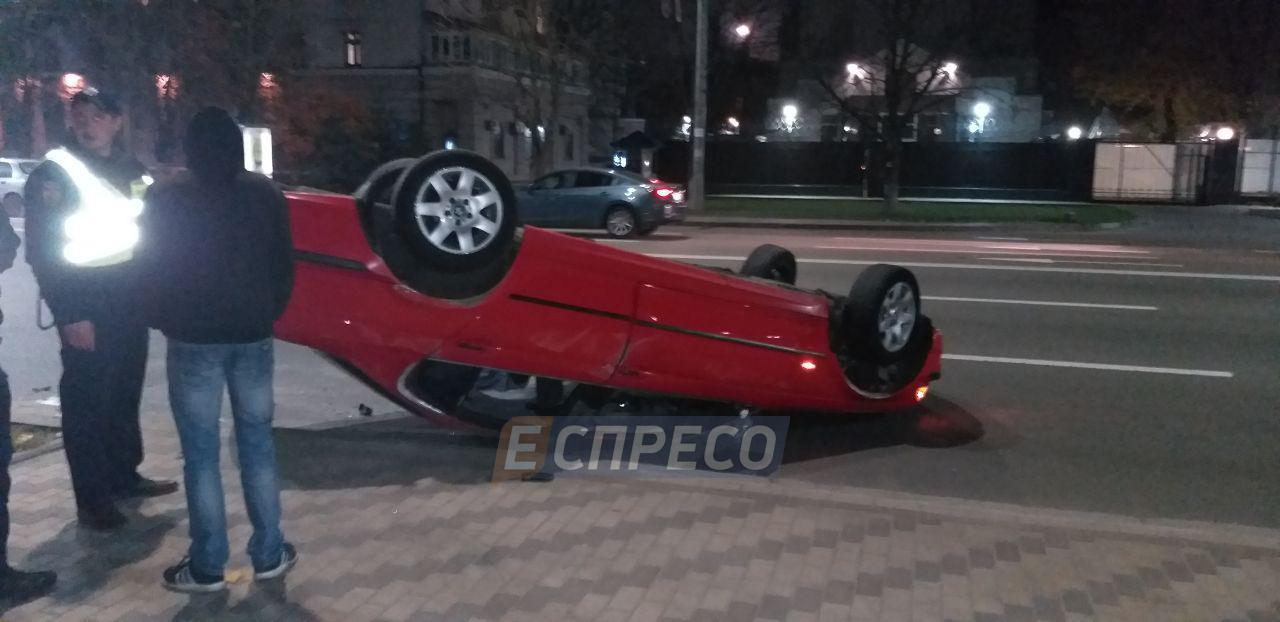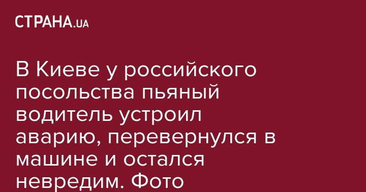 В Киеве у российского посольства пьяный водитель устроил аварию, перевернулся в машине и остался невредим. Фото